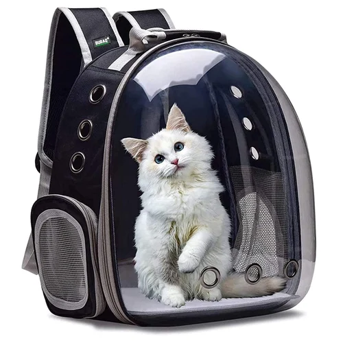 Breathable space capsule bubble cat backpack-Extra 9 vent holes around this carrier backpack and two side windows to perform great air circulation inside. Expanded back panel to be a giant tent bed for your furry friends to enjoy outdoor time with nature and sunshine well without feeling stuffiness in the backpack, the best ventilation ever.
