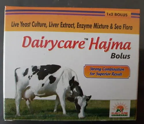Dairycare Hajma Bolus is a cattle feed suppliment for digestive disorder in animals, having unique formula for faster and stable results, any type of diarrohea, digestion problem ,loss of appetite any type of digestive disorder Hajma bolus is a unique formula for these disorders.