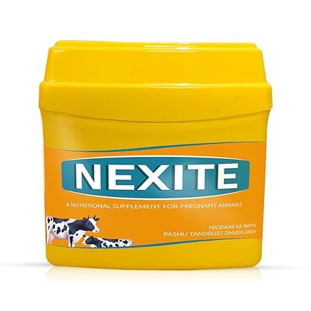 Nexite, manufactured by Niceway India, is a high-quality nutrition supplement for pregnant animals designed to support the health and well-being of cattle and buffalo. This innovative product is formulated to provide essential nutrients, promoting optimal nutrition and preventing the risk of hypocalcemia. Benefits/Features Mobilizes Calcium and Phosphorous: Regular feeding of Nexite helps in mobilizing calcium and phosphorous in cattle and buffalo. These essential minerals play a vital role in maintaining healthy bone structure, muscle function, and overall metabolic processes. Prevents Hypocalcaemia: By providing the necessary nutrients, Nexite helps avoid the chances of hypocalcemia, a common condition in dairy animals characterized by low blood calcium levels. Preventing hypocalcemia ensures optimal health and productivity in cattle and buffalo. Enhances Nutrition: This nutrition supplement for pregnant animals acts as a valuable supplement to enhance the overall nutrition of animals. It provides a balanced blend of essential nutrients, vitamins, and minerals required for optimal growth, milk production, and reproduction. Easy to Use: Nexite is designed for convenient usage, making it easy to incorporate into the daily feeding routine. Simply administer 50 grams of Nexite in the morning and 50 grams in the evening to cattle and buffalo. Quality Assurance: Manufactured by Niceway India, Nexite undergoes stringent quality control measures to ensure the highest standards of safety, purity, and efficacy. It is a trusted supplement that farmers can rely on for the nutritional needs of their livestock.